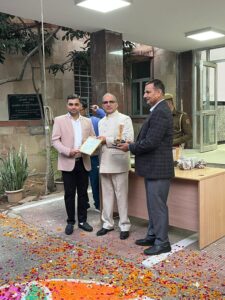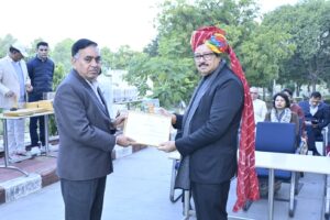 राज्य स्तर पर वन विभाग में कार्यरत वरिष्ठ निजी सचिव अशोक कुमार शर्मा को उनके दीर्घकालिक, अनुकरणीय एवं उत्कृष्ट कार्यों के लिए पवन कुमार उपाध्याय, प्रधान मुख्य वन संरक्षक (वन बल प्रमुख), राजस्थान द्वारा प्रशस्ति पत्र एवं स्मृति चिन्ह प्रदान कर सम्मानित किया गया। यह सम्मान उनके समर्पण, कर्तव्यनिष्ठा और विभागीय कार्यों में उत्कृष्ट योगदान की औपचारिक स्वीकृति रहा।