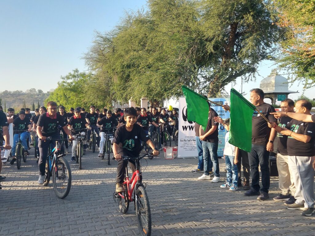कार्यक्रम को मुख्य वन संरक्षक (वन्यजीव) सेडूराम यादव, उपवन संरक्षक यादवेंद्र सिंह चुंडावत, सेवानिवृत्त मुख्य वन संरक्षक एवं ग्रीन पीपल सोसाइटी अध्यक्ष राहुल भटनागर, अरावली ग्रुप ऑफ कॉलेज के चेयरमैन ओम प्रकाश अग्रवाल और अरावली इंजीनियरिंग कॉलेज के डायरेक्टर डॉ. हेमंत धाभाई सहित कई विशिष्ट अतिथियों ने हरी झंडी दिखाकर रवाना किया। इस दौरान ऊर्जा और जल संरक्षण के महत्व पर जोर देते हुए सभी ने आमजन से पर्यावरण के प्रति जिम्मेदारी निभाने की अपील की। डब्ल्यूडब्ल्यूएफ-इंडिया के राजस्थान राज्य समन्वयक अरुण सोनी ने बताया कि यह आयोजन सिर्फ एक कार्यक्रम नहीं बल्कि एक संदेश है—प्रकृति के साथ संतुलन बनाने का। शहर के अलग-अलग वर्गों से आए लोगों ने इसे एक उत्सव की तरह मनाया।